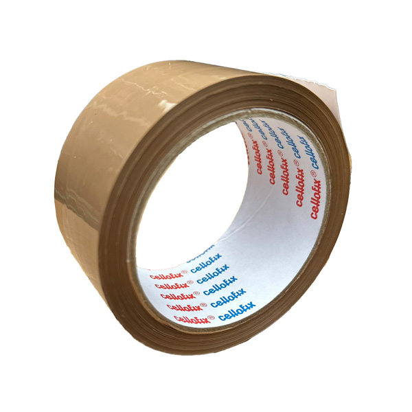 Brand: Cellofix Reliable and high-quality Brown ‘low noise’ adhesive tape High adhesive, ensuring a secure seal Resisting tearing or splitting, making our tape a great choice for heavy-duty applications – easy to apply to packages / boxes etc Can be used in a Tape Dispenser